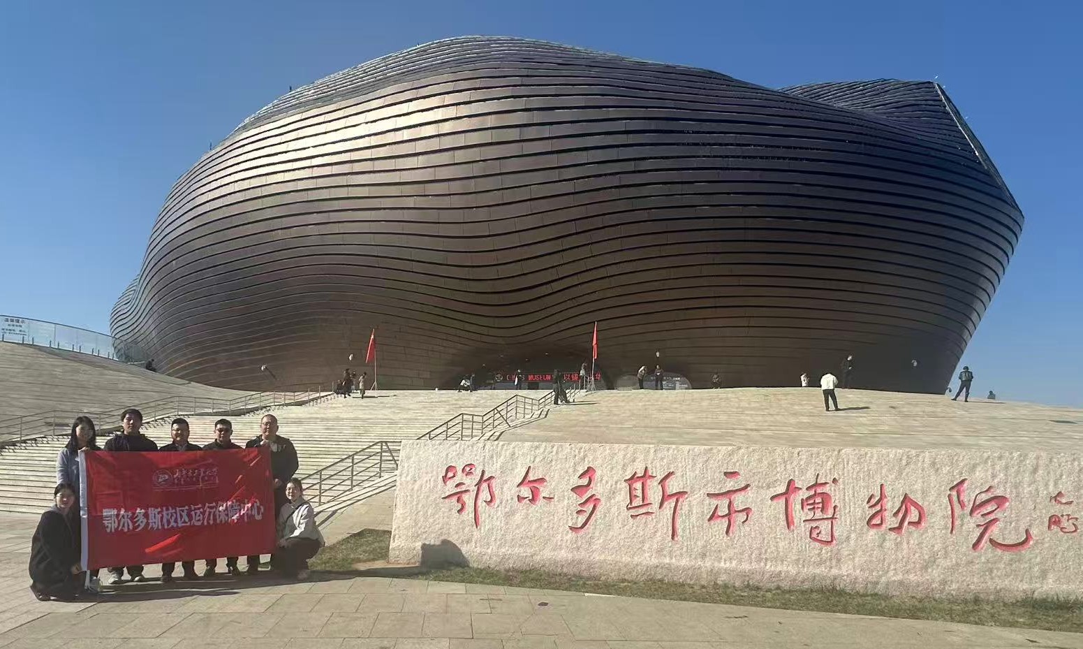 为增进教职工对地区历史与发展的了解,铸牢中华民族共同体意识,鄂尔多斯校区运行保障中心于2025年10月28日组织部门教职工前往鄂尔多斯博物院开展国情研修活动。